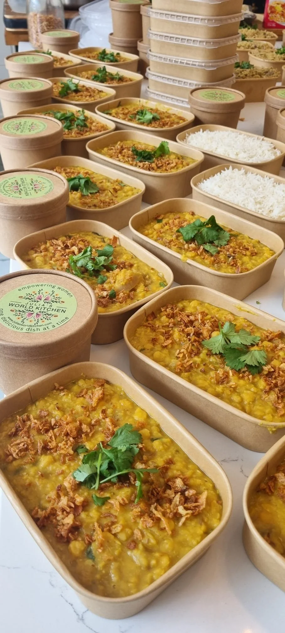 We deliver authentic home-cooked food through catering, home deliveries, pop-ups, corporate events, working lunches and private parties - which we combine with suporting talented female home chefs in our community who have recently made the UK their home.